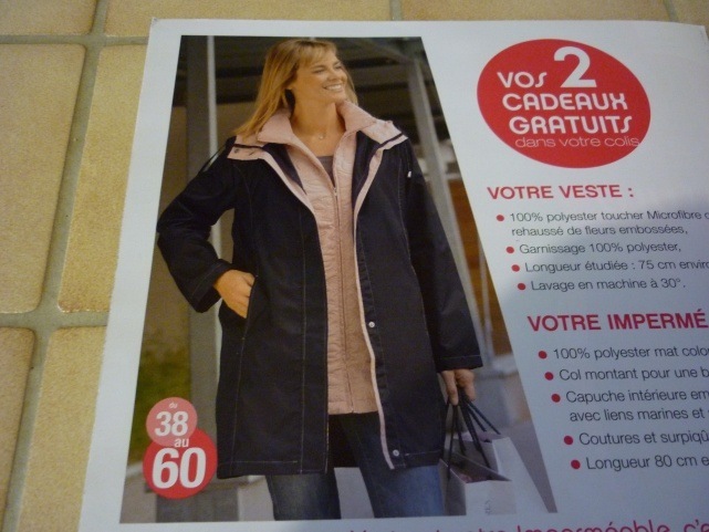 Avec votre code privilège 1020, Une veste et un imperméable (bleu marine) en cadeau pour toute commande. Une démarque de 10 euros pour 20 euro de commande. La participation au jeu. La gratuité des frais de port (sans minimum d'achat).