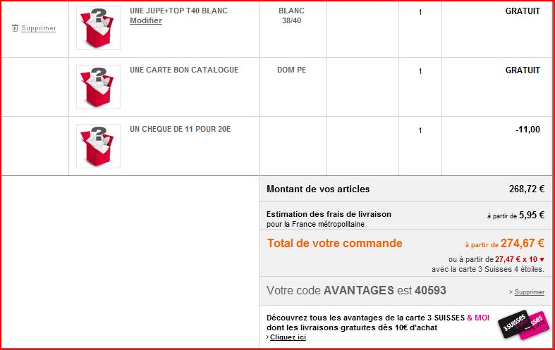 Merci krima25. Reçu même catalogue aujourd'hui avec autre code mais sans les 11/20 :-x l'ensemble a l'air vraiment sympa