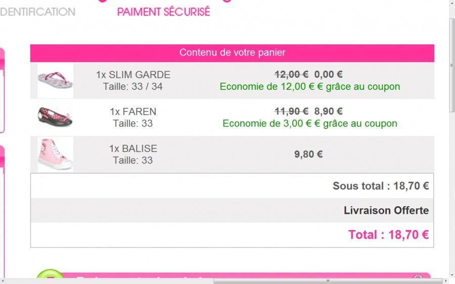 exemple 2 paires hello kitty et 1 paire Havaianas pour 18,70 euro