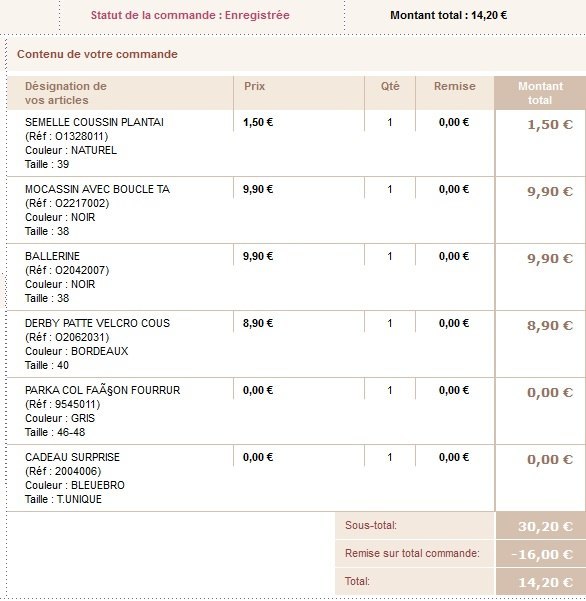 16/29.99 € et 2 cadeaux , si plus de 2 articles commande ; fp0 !
