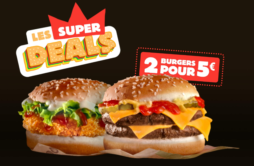 Ce mois-ci, ce n'est pas un, mais bien deux burgers KING DEAL qui sont à 5€.