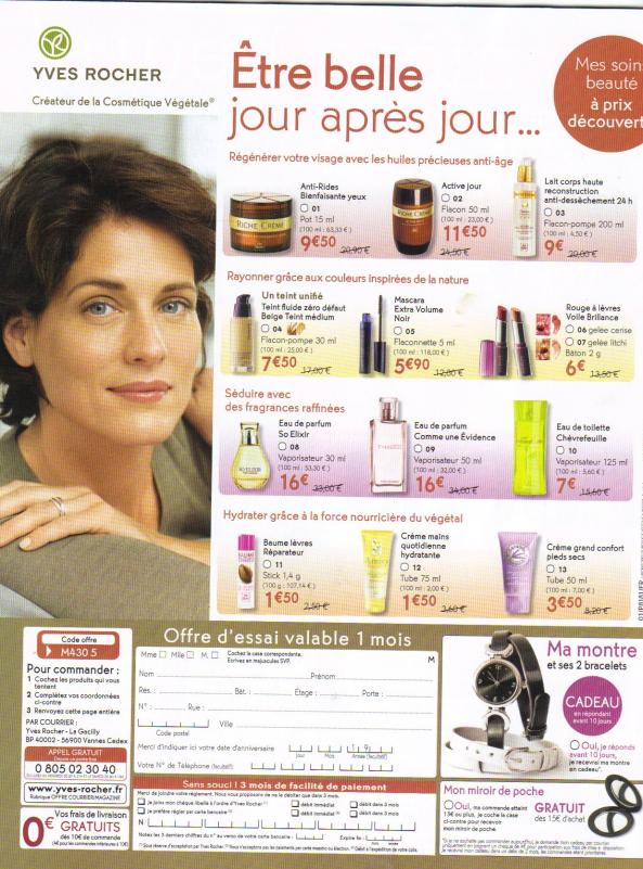 2 offres decouverte Yves Rocher trouvées dans des mag feminins