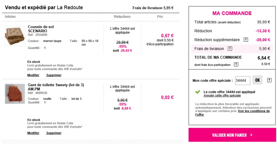 Sauf prix rouge, tu peux ajouté plusieurs articles dans ton panier et voir directement les produits qui bénéficient de la réduction.