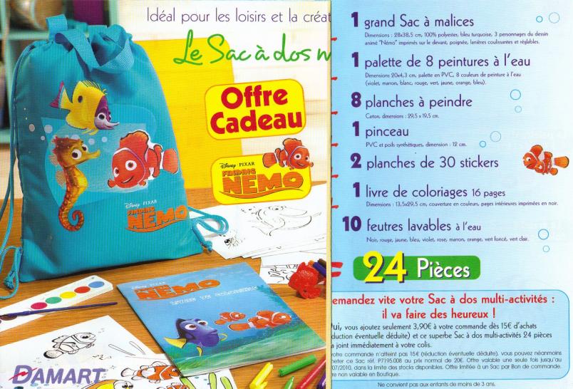 sac nemo avec 24 pieces pour coloriage à 3.90e au lieu de 15e si 15 e d'achats >> offre de reduction.