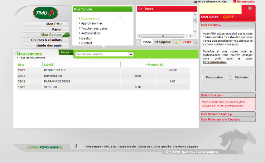 - Choisir une somme minimum (entre 5 et 100 euros) à mettre sur votre compte PMU (somme que vous récupérez quelques jours aprés, sauf si vous la jouez lol)