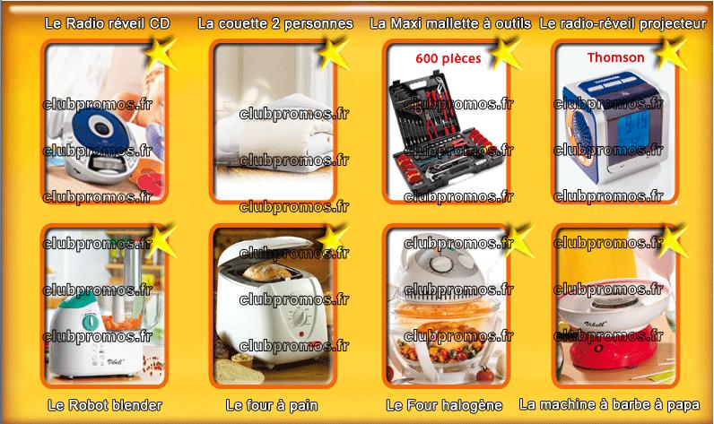 toujours valide, mais plus que 4 cadeaux disponibles : machine barbe à papa, four à pain, robot multifonctions et radio réveil