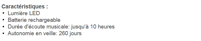 • Durée d'écoute musicale: jusqu'à 10 heures