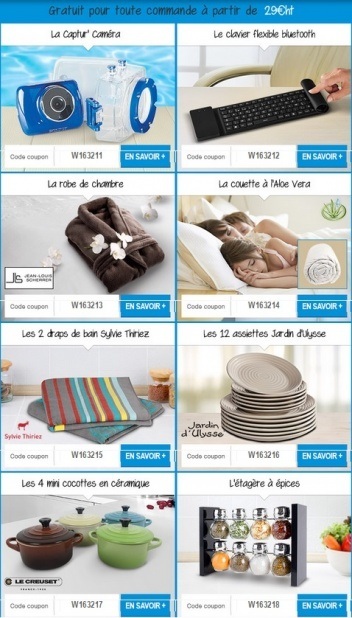 Bonjour, une liste de 8 nouveaux cadeaux, valable jusqu'au 09.03 à partir de 29€ HT d'achats (j'ai une autre liste avec les mêmes cadeaux à partir de 49€ d'achats, mais moins d'intérêt).