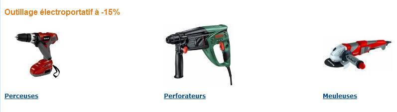 Amazon outillage - 15% de réduction sur l'électroportatif.