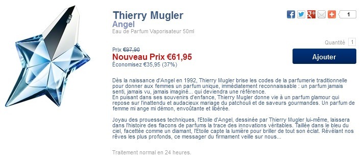 Un bon plan pour les adeptes d'Angel de Thierry Mugler qui est actuellement à 61.95€ en eau de parfum 50 Ml ressourçable + livraison gratuite.