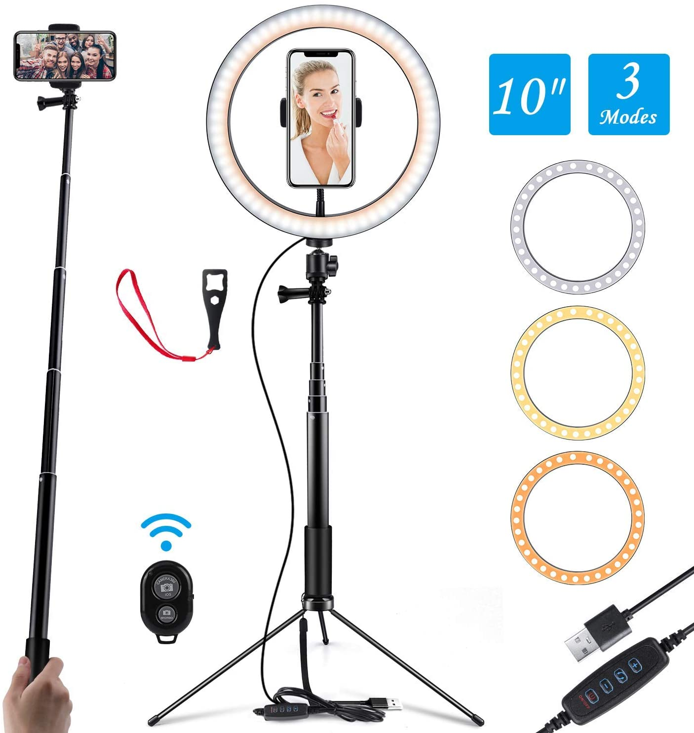 - 【Modes multiples】Notre anneau de lumière est réglable avec 10 niveaux de luminosité et 3 lumières différentes (lumière froide, naturelle et chaude), vous pouvez donc ajuster librement la lumière et choisir le mode le plus approprié.