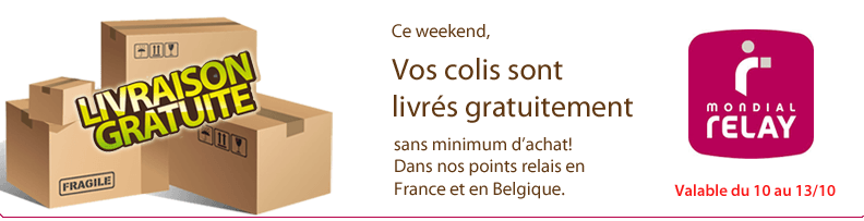 Discorde Membre actif 23 Janvier 2013 340 23 60 10 Octobre 2014 #1 FDP gratuits en relais colis du 10 au 13 octobre avec Mondial Relay : Fichiers joints Capture.PNG 27.1 KB · Affichages: 233 Les réactions: Missy