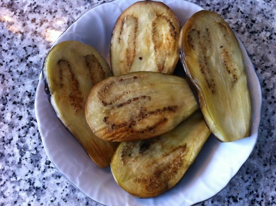 Ajouter une à deux gousses d'ail coupées en 2 ou en 3 morceaux sur les aubergines et mettre au four termostat 7 pendant 20 minutes environ.