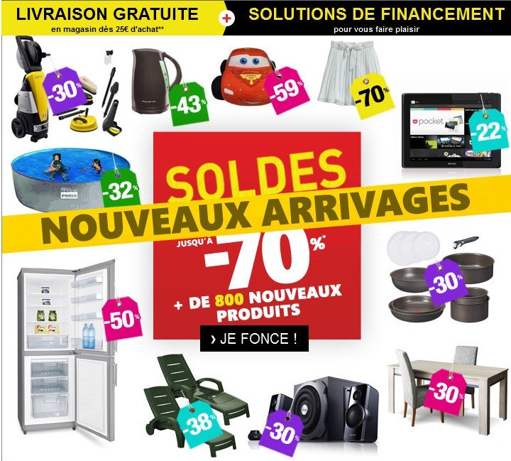 Nouvel arrivage de soldes Auchan, pas moins de 800 nouveaux produits avec livraison gratuite en magasin dès 25€ d'achat !