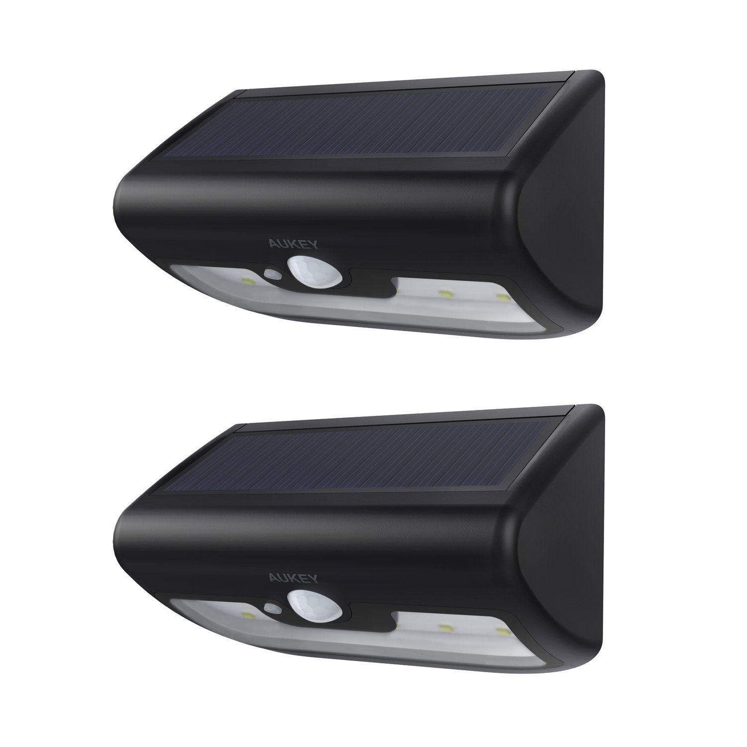 - Contenu de la boîte : Deux lampes solaires AUKEY LT-W22, huit vis et huit chevilles, guide de montage, manuel d’utilisation, carte garantie de 24 mois