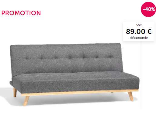 Banquette convertible 3 places Landry - Anthracite à 140€ au lieu de 229€ -39%