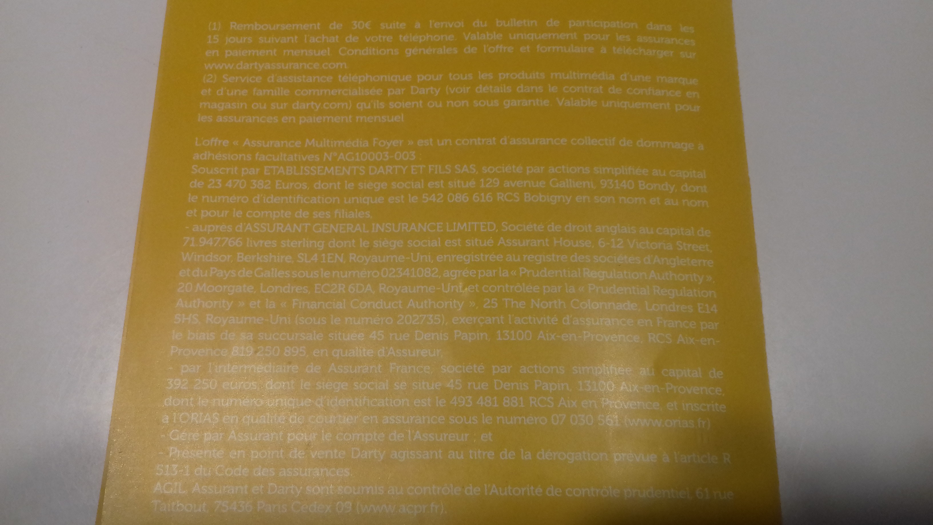 Aujourd hui, je suis allée acheter à darty un telephone à 154 €. Avant meme que je dise au vendeur du vendeur que je le prenais, il me dit qu une odr est en cours. Il suffirait de souscrire à l assurance mobile (5,99€ /mois pour une duree de 12 mois) , et que je recevrais 30 € en odr. Il ajoute que le premier mois est gratuit et qu avant 30 jours, il suffit juste que je resilie l assurance par simple appel téléphonique..