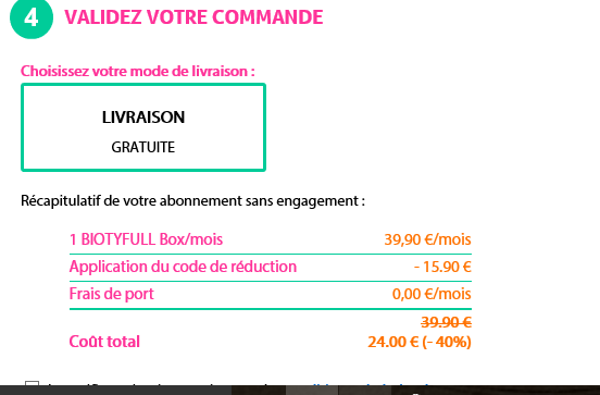 code promo BIOTYFULL BOX A 24.00 € (- 40%) au lieu39.90 € sans engagment
