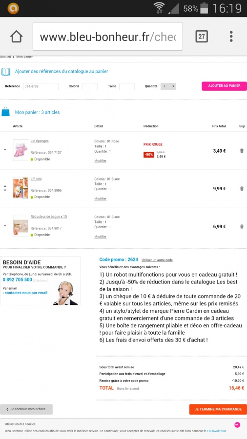Bon, et bien je confirme le robot est en deuxième commande avec le code RW68. qui donnr le robot et -15 pour 39€ d'achat ...