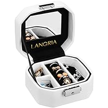 LANGRIA en Relief Simili Cuir Boîte à Bijoux, Forme octogonale avec Miroir intégré, verrouillable, Taille compacte, Maquillage et Accessoires de Stockage Organiseur Coque (Blanc)