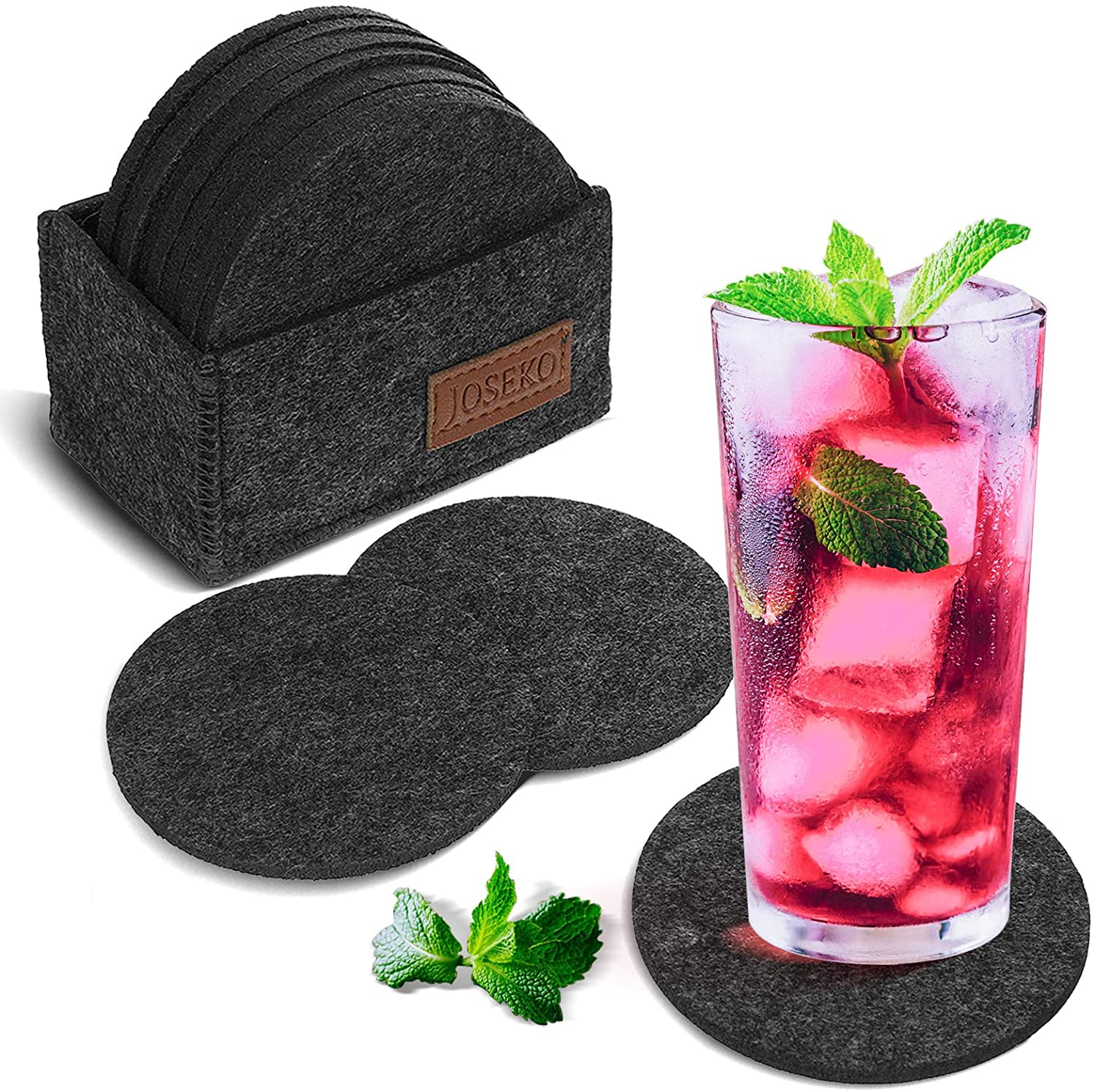 Sous-verres Ronds en Feutre JOSEKO Lot de 12 Sous-verres en Verre Design Simple et Elégant Sous-verres en Feutre Boîte de Rangement pour Boissons Tasses Bars