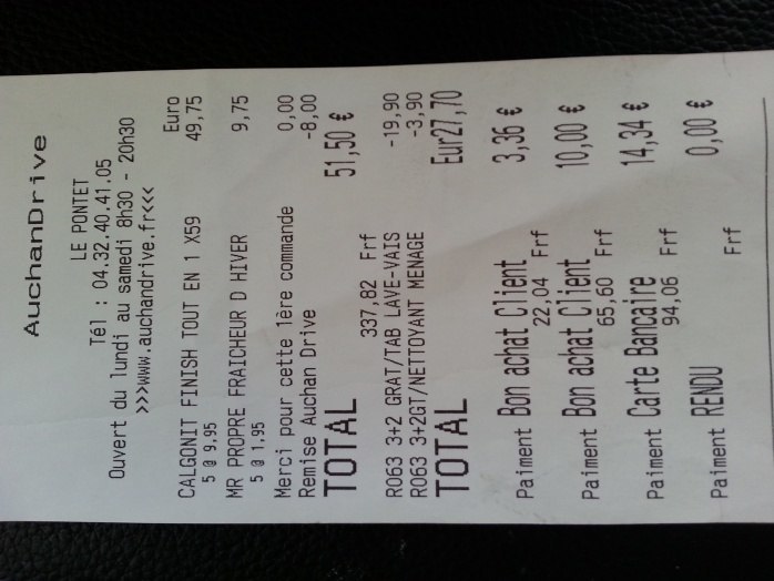 Mon ticket la nana à oublier de compter un bon Mr propre du coup elle me la mis sur ma cagnotte