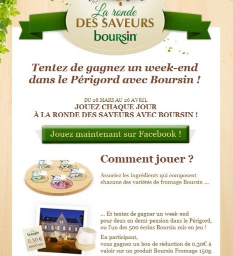 Boursin - gagner un weekend dans le Périgord ! (via fb)