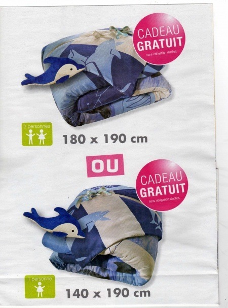 - Nous vous offrons une couette imprimée dauphin en taille 1 ou 2 personnes au choix.