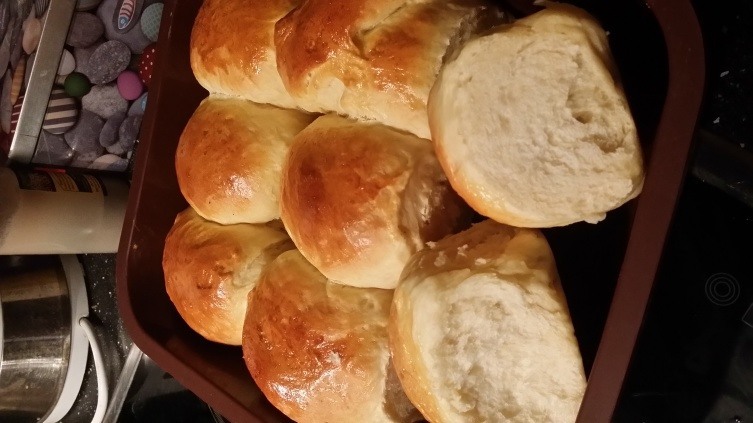 Dégazer la pate ,formez des boules (j'ai farçis chaque boule d'un carré de chocolat) et laisser à nouveau lever 1h30