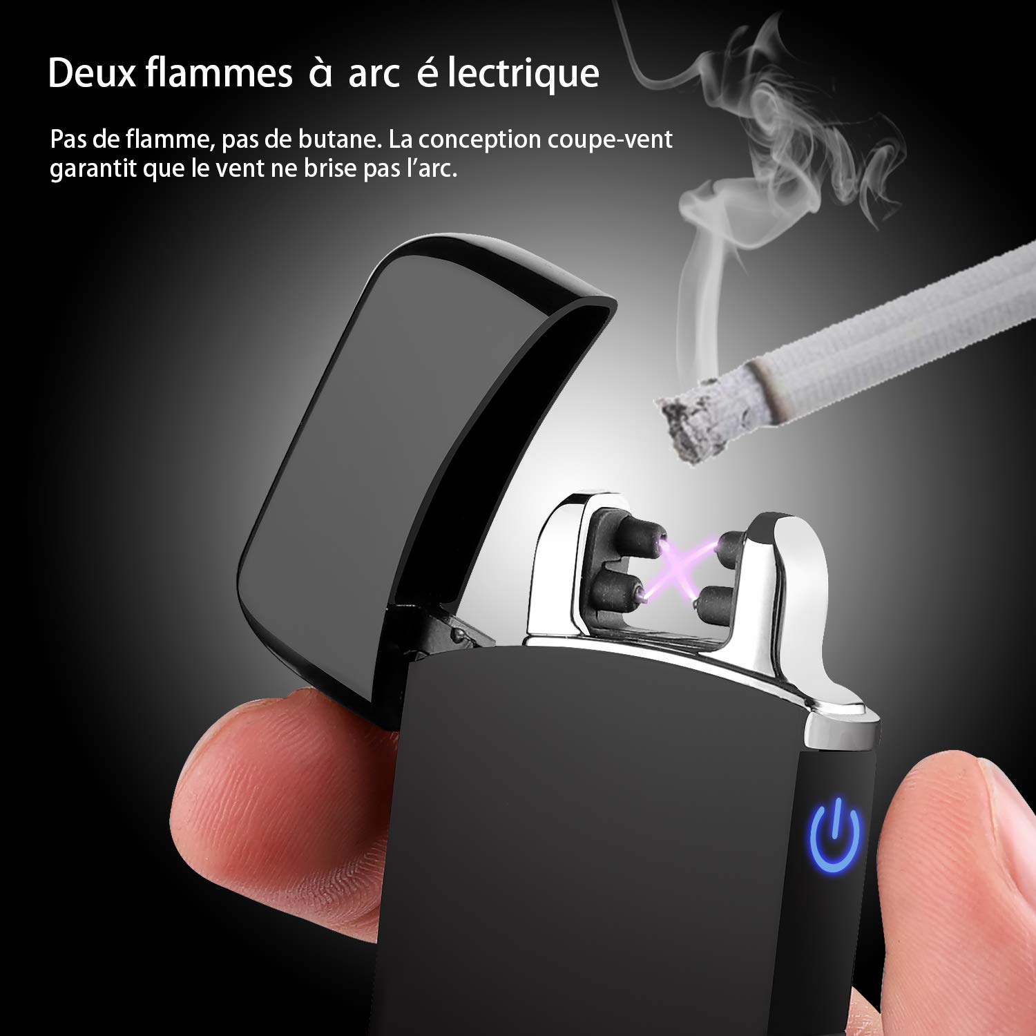 • 【Conception unique】- Allumeur à double arc fabriqué avec une technologie brevetée et innovante pour résoudre le problème des résidus de tabac collés et du bruit tels que les allume-bobines. Les touches tactiles sont plus à la mode.Briquet avec indicateur de batterie est plus pratique