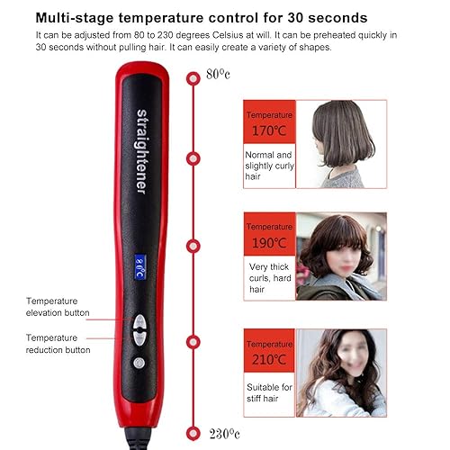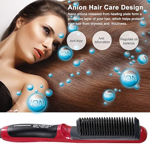 Brosse Lissante Chauffante - Anself Brosse de Chauffage électrique en Céramique, Affichage LED+Peigne à Cheveux de la Température Réglable, Brosse Chauffante Ionique+Anti-échaudage