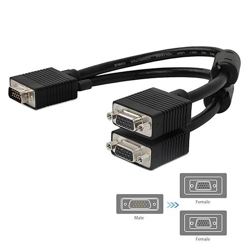 • VGA Y splitter prend en charge des résolutions vidéo de 800x600 (SVGA), 1024x768 (XGA), 1600x1200 (UXGA), et 1080p pour haute résolution LCD et LED moniteurs.