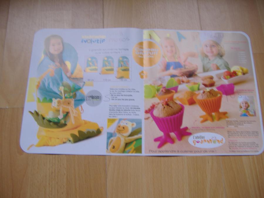 un atelier gourmand (set de patisserie comprenant un tablier, 1 toque, 9 moules en silicone, 1 fouet, 1 spatule et une cuillère)