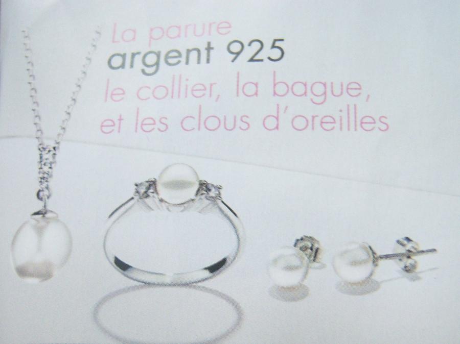 - Parure 1 : argent 925 et perle (collier, bague et clous d'oreille)