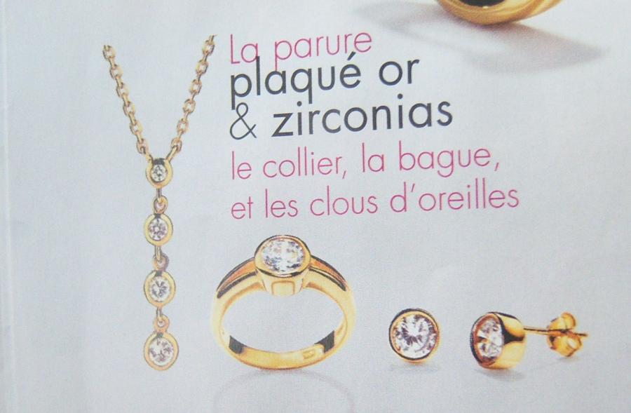 - Parure 2 : plaqué or et zirconias (collier, bague et clous d'oreille)