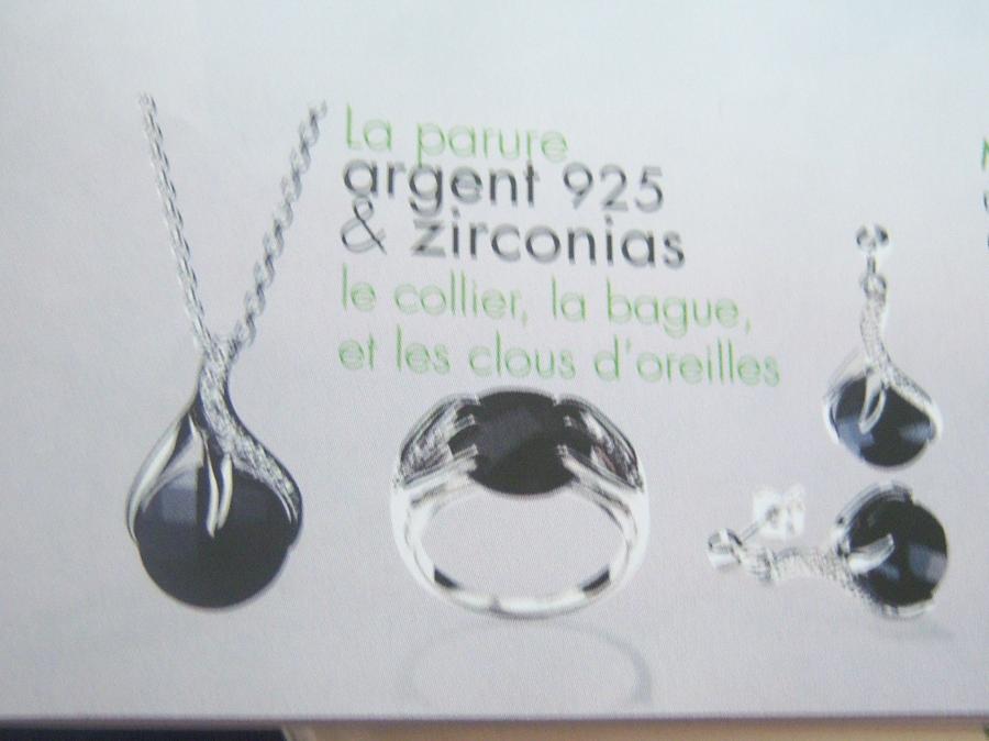 - Parure 3 : argent 925 et zirconias noir (collier, bague et clous d'oreille)