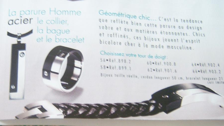 - Parure 4 : parure Homme acier bicolore (collier, bague et bracelet)