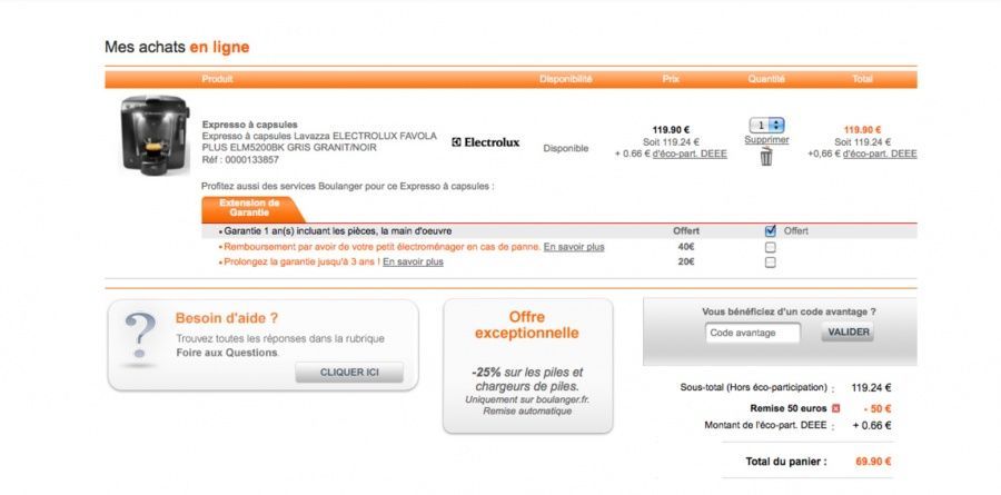 En combinant le code FAVO-50 chez boulanger et l'ODR de 50€, on peut avoir la machine la moins cher de la gamme Favola d'Electrolux gratuitement ;)