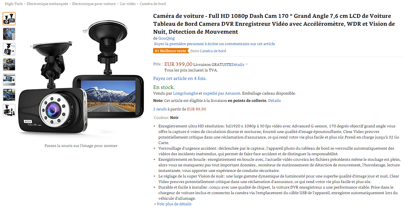 https://www.amazon.fr/Caméra-voiture-Enregistreur-Accéléromètre-Détection/dp/B07DJMCWS5/ref=sr_1_1?s=electronics&ie=UTF8&qid=1529771775&sr=1-1&keywords=Caméra+de+voiture+-+Full+HD+1080p+Dash+Cam+170+°+Grand+Angle+7,6+cm+LCD+de+Voiture+Tableau+de+Bord+Camera+DVR+Enregistreur+Vidéo+avec+Accéléromètre,+WDR+et+Vision+de+Nuit,+Détection+de+Mouvement