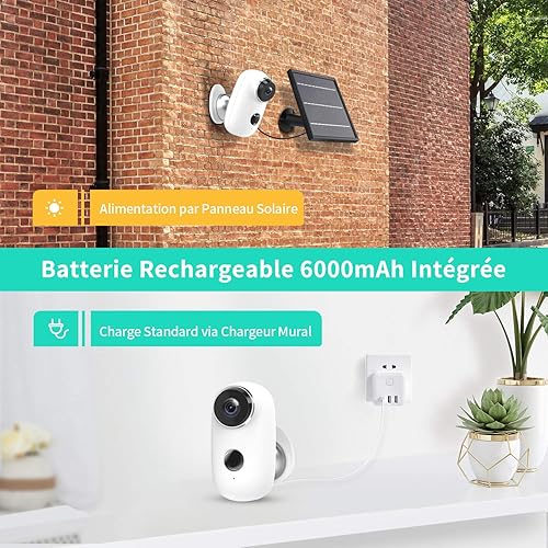 • 【Caméra Surveillance sur Batteries 100% sans Fil 】 Alimentée par deux piles rechargeables intégrée de 6000mAh, pas besoin de cordon d'alimentation, HMD2 caméra surveillance wifi peut supporter une autonomie de 4 mois losqu'elle détecte les mouvements 10 fois par jour. Puce 2.4G intégrée offerte une connexion WiFi plus fiable, cette caméra IP Wifi peut fonctionner rapidement même à l'extérieure (supporte uniquement le WiFi 2.4G)