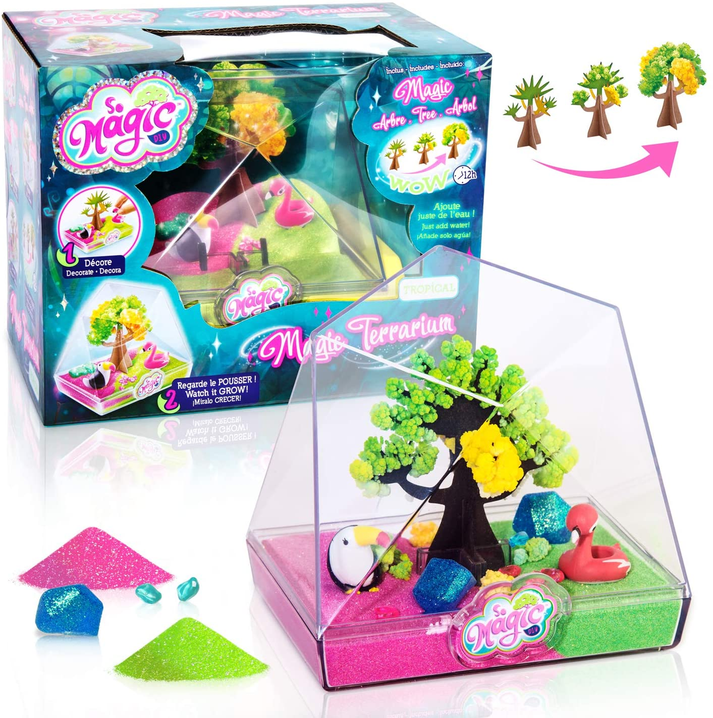 • Fabrique ton propre terrarium en ajoutant du sable, des cailloux et des décorations ; regarde ton arbre magique pousser ; collectionne-les tous