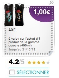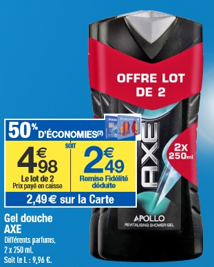 4.98 € axe douche - 60% carte = 1.99 € - bdr ma vie en couleur 1 € = 0.99 €