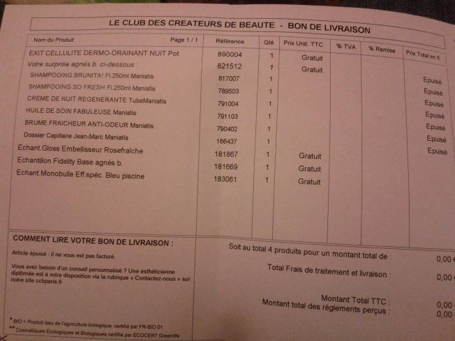du coup ils ne facturent même pas les FDP et tu as le produit + échantillons envoyé gratos à la maison