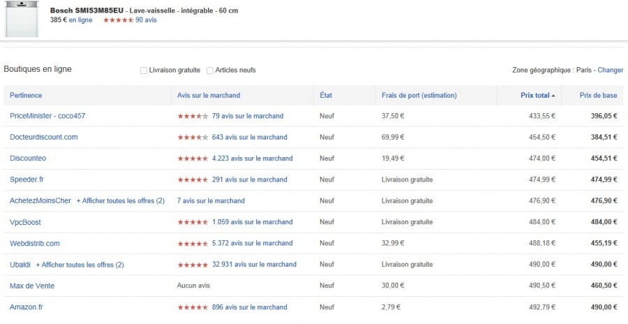 Mettre la référence sur google et sélectionner "Plus" puis "Shopping"