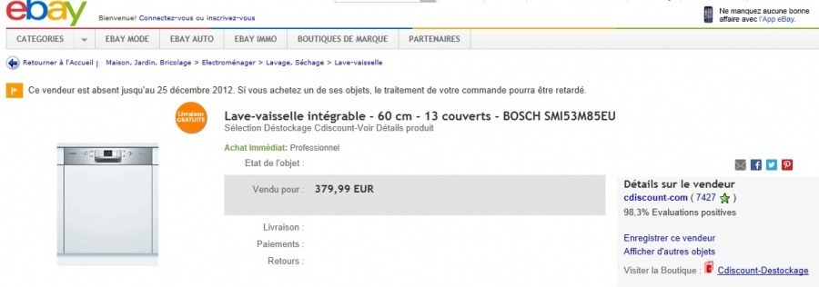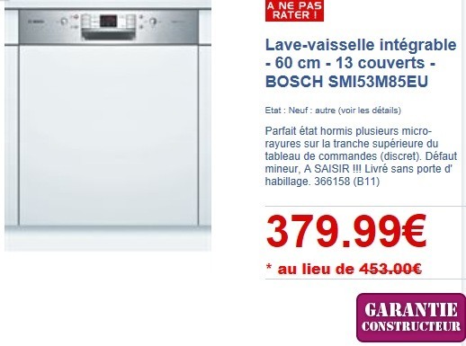 Au final pour 380€ livré en bas de chez moi j'ai un lave-vaisselle qui était vendu environ 80 à 100€ de plus sur les autres sites et il fallait le récupérer au relais :evil: