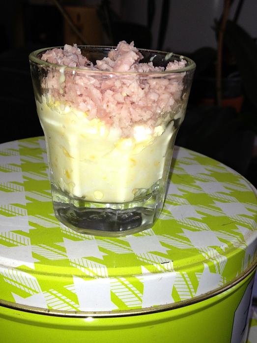 je réserver un sort de verrines avec confiture de figue et gresin à mon bloc que j'aurai coupé en cube mais il était pas top au goûtage :cry:
