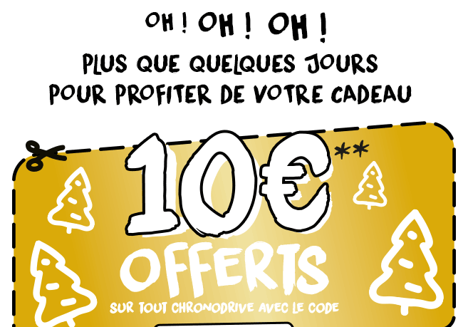 **Pour toute première commande d'un montant minimum de 50€ passée avant le 31 décembre 2016 inclus dans le drive de votre choix. Offre réservée aux porteurs du code personnel, valable une seule fois par foyer et non cumulable avec d'autres codes promotionnels. Code promo à saisir à la main et en MAJUSCULES en page de validation de commande. Ne pas copier-coller.