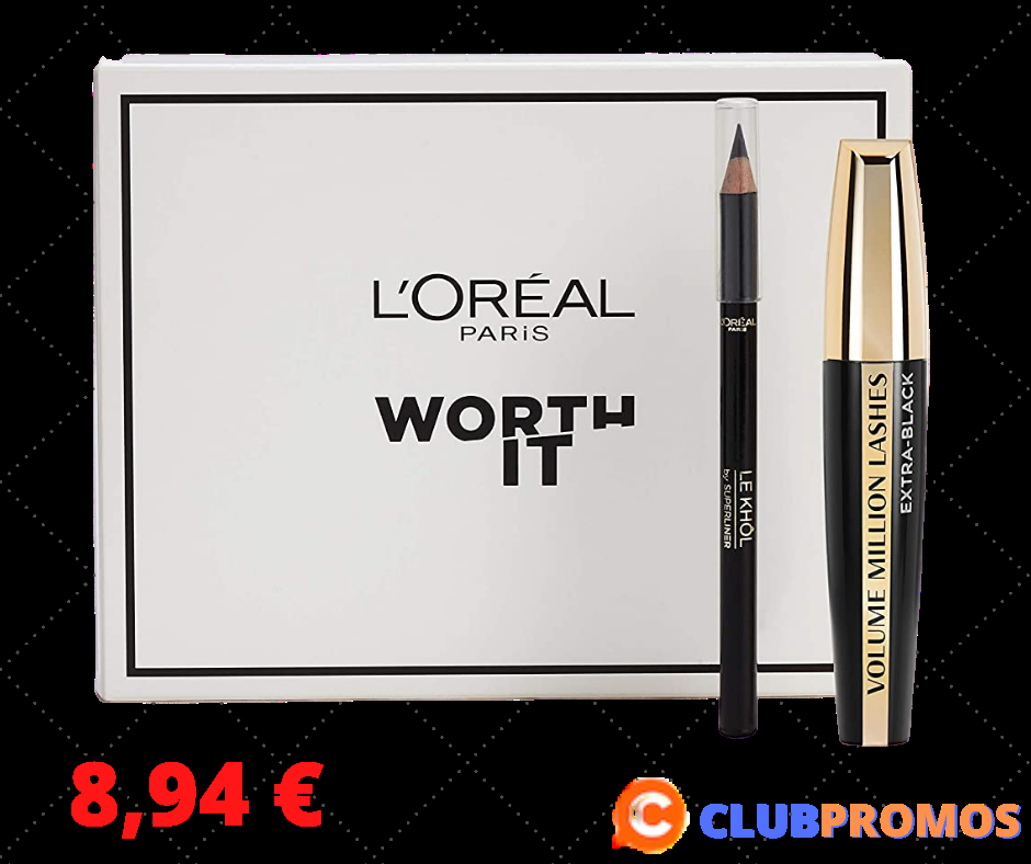 L’Oréal Paris – Coffret Regard : Super Liner le Khôl Midnight Black 1,2 g + Mascara Volume Million de Cils Extra Black 9,2 ml 8,94€ au lieu de 14,90 €