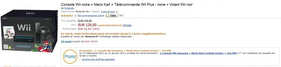 Console Wii noire + Mario Kart + Télécommande Wii Plus+ Volant pour 129€