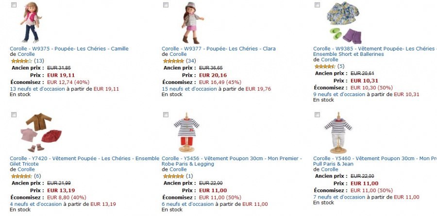 Je viens de voir qu'il y a une nouvelle promo sur les poupées et accessoires Corolle sur Amazon, avec des réduction jusqu'à -50% de réduction sur une sélection! L'offre est valable jusqu'au 1er février 2014 inclus.